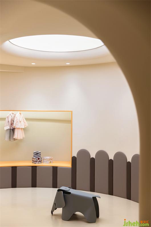 童裝店設(shè)計(jì)師運(yùn)用柔和曲線(xiàn)作為基礎(chǔ)的設(shè)計(jì)語(yǔ)言,