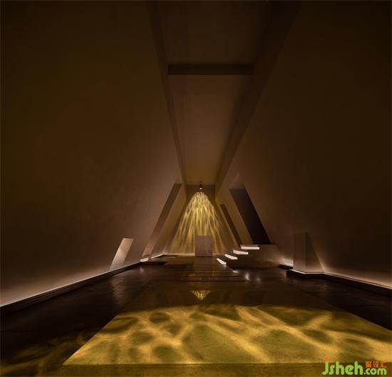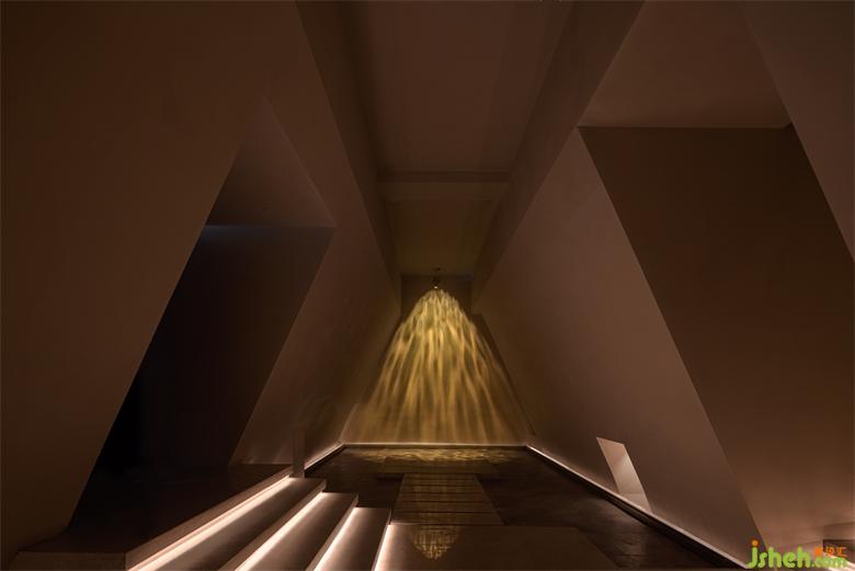 推開(kāi)O.GO SPA的大門,我們需要向下走4到5級(jí)的臺(tái)階,進(jìn)入到下沉式空間,可以看到的是類似于金字塔一樣的造型,站在一樓SPA設(shè)計(jì)大廳中央仿佛來(lái)到了異世界,與現(xiàn)實(shí)世界相隔的那一面墻在這一瞬間似乎也不再重要。