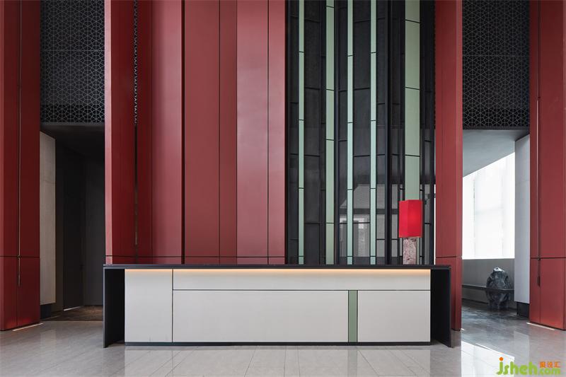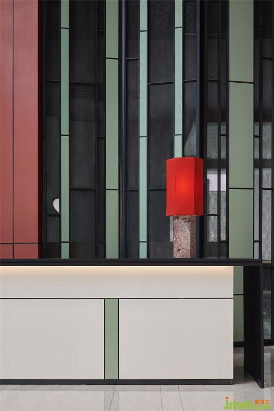 “夾墻翠竹”是余蔭山房著名綠化景觀之一。設(shè)計將其提取凝練,抽象轉(zhuǎn)化,與高聳門扇相容,延續(xù)余蔭山房“浣紅跨綠”的色彩概念,在虛與實的縫隙里,營造出閑適、淡雅的生活情境。