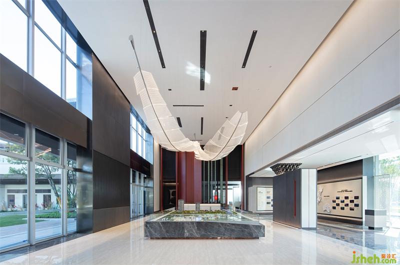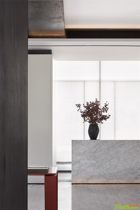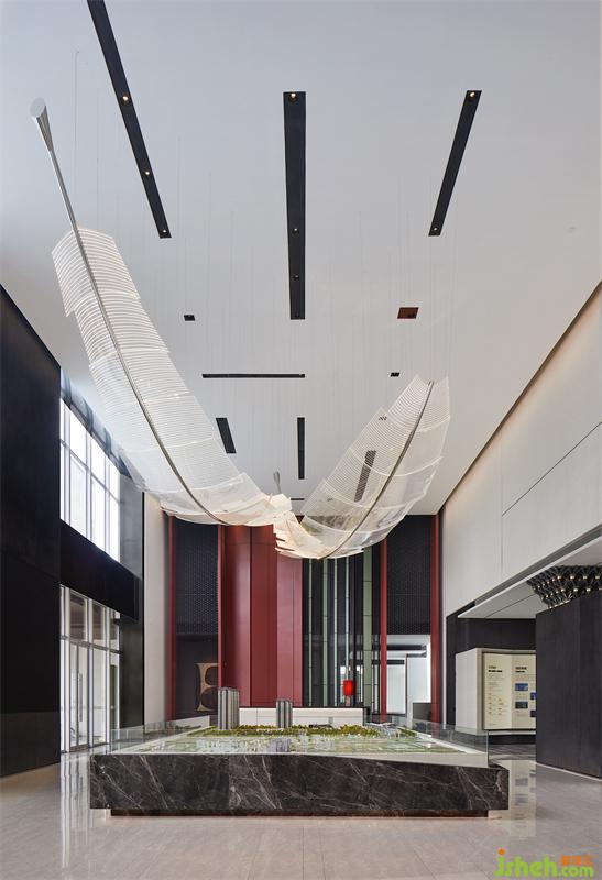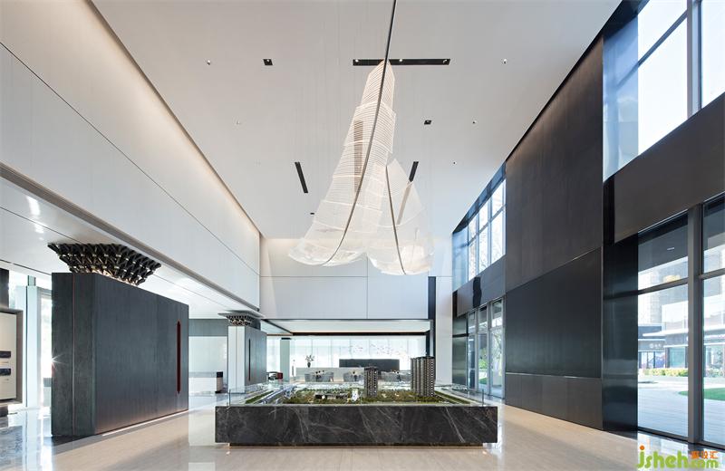 白與黑,紙與墨,售樓處設(shè)計在抽象和具象之間找到了一個平衡的點,給人“看花非花,看花是花”的韻律與感受。