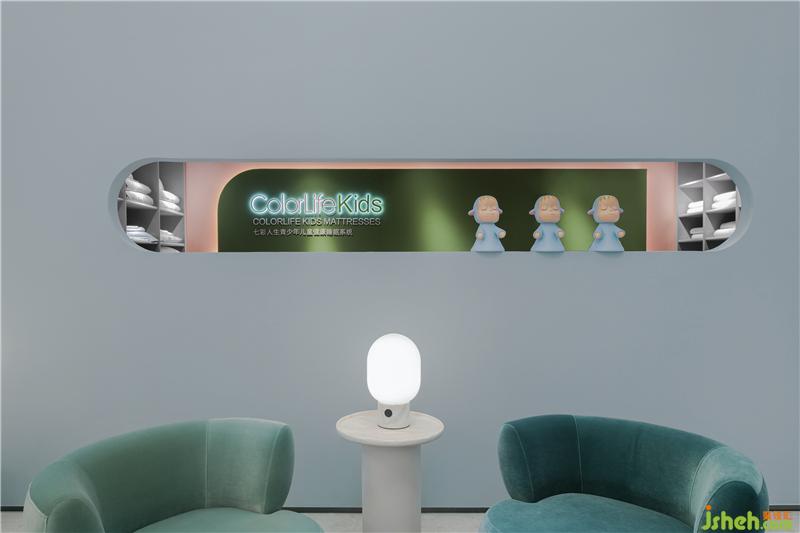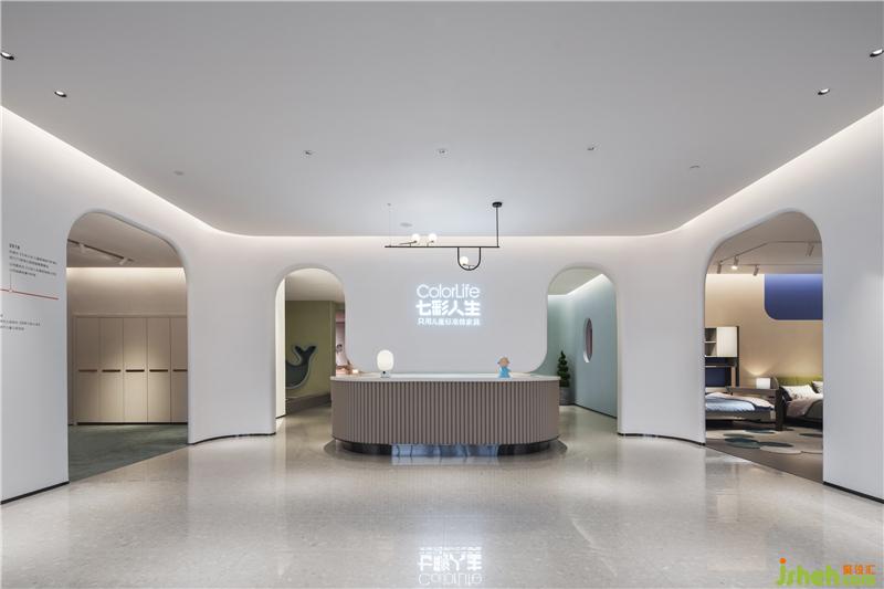 本案服務(wù)品牌為七彩人生,二十多年專注于兒童、青少年家具研究生產(chǎn)。此次設(shè)計需要對多個系列的產(chǎn)品同時展示,既要有品牌的整體感,又要有不同系列的特性美。對于展示空間來說,只有人對空間有了好感,才能增多了解產(chǎn)品的機會。