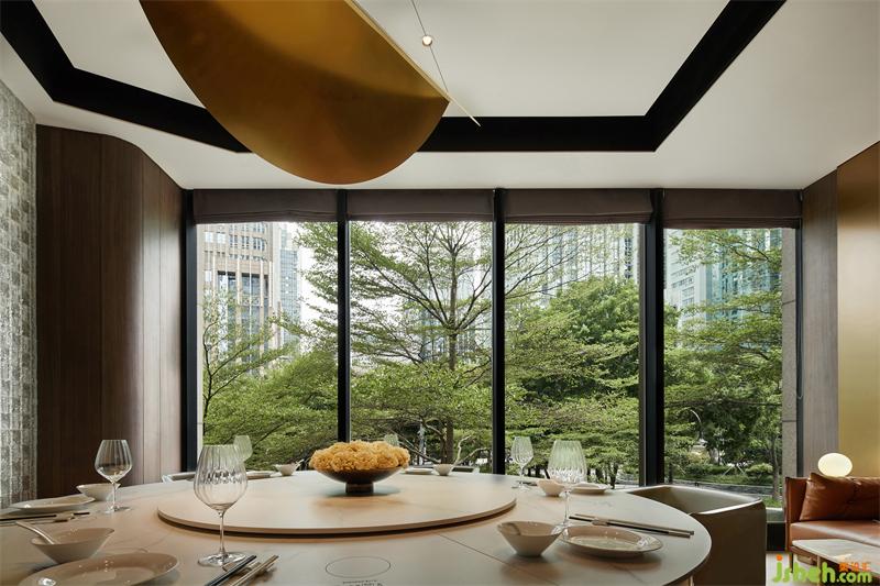 推門而入,霎時豁然開朗,一整面清麗的窗景令人眼前一亮。茂盛的樹冠近在眼前,仿佛伸手便可與之相握。懸于樹梢上享用美食,想來也是奇妙的體驗。