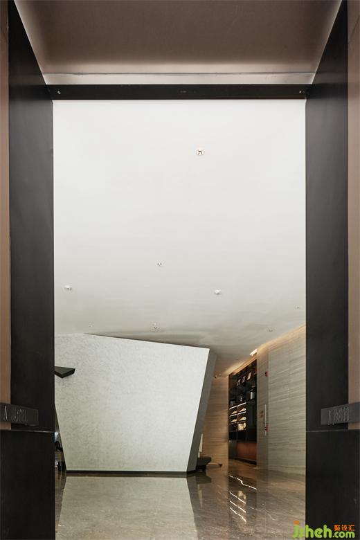 進入酒店的一樓是接待區(qū)及會客區(qū)。這個空間被置入了一個碩大的雕塑墻體,三亞小酒店設(shè)計自然的把空間分成了里外。用幾何形體解構(gòu)與切割的方法來表達(dá)當(dāng)代感。