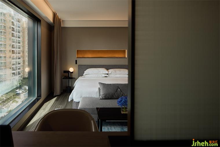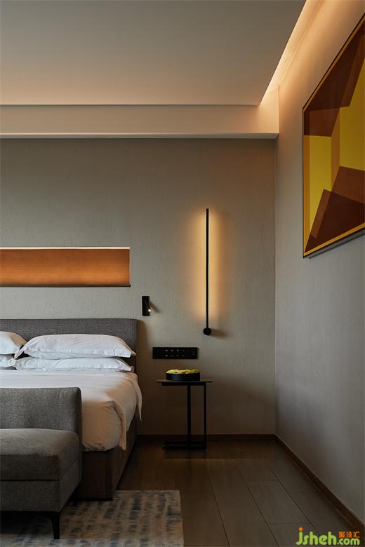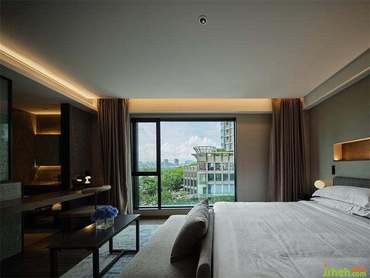 落地窗的位置設(shè)計了一個長長的休息凳,當(dāng)人慵懶地躺在這時,一眼望去的愜意感,三亞小酒店設(shè)計讓身體的每個細(xì)胞都變得松弛下來,沉醉于繁華都市的綠洲之中。