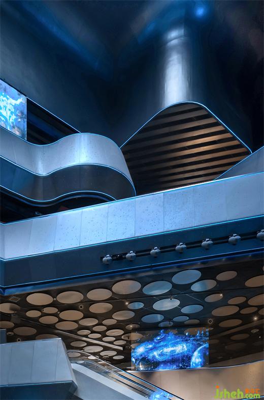 The atrium is a multi-functional space endowed with social attributes and is also a show floor. The cascade design of the atrium railings, lighting outline the space corridor, with the change of sight, the sculptural sense of the railings is presented.
