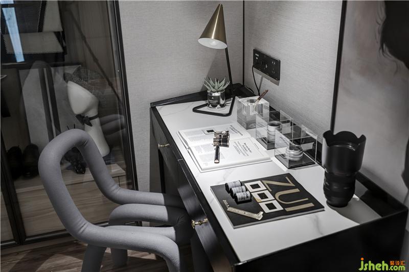 室內(nèi)設(shè)計(jì)師在書桌旁豎立著一幅黑白人物裝飾畫