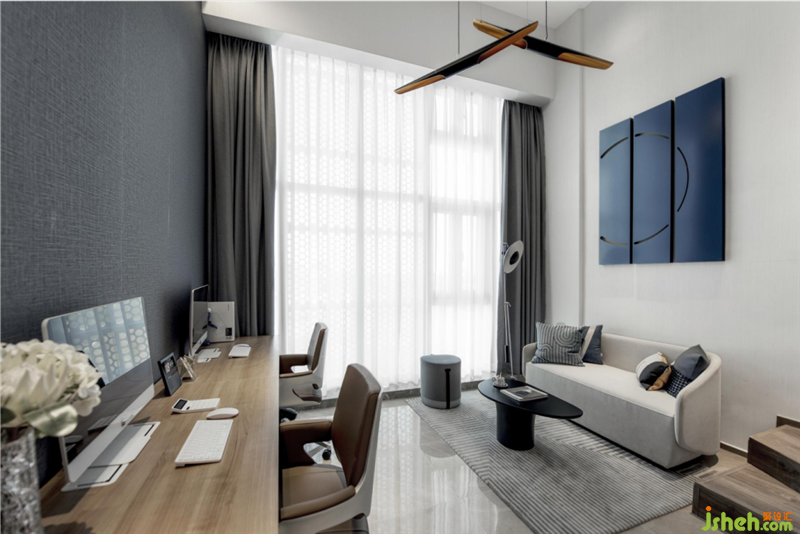 客廳設(shè)計(jì)感十足的吊燈搭配高品質(zhì)的辦公用品