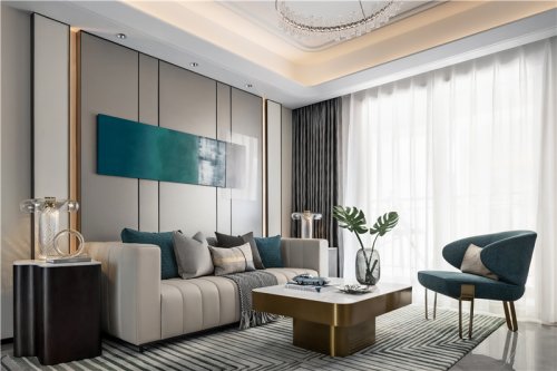 Occasionally with modern decorative paintings but add to the modern atmosphere, will not be a wonderful time to sink in the long river of time. The facade of the convex texture is displayed through a circular arched partition wall. The inside of the grille shape creates an atmosphere with light and shapes the visual focus of the empty area. Raw wood solid wood floor laying, strong and durable, forming a good match. The large sofa seats in the room, surrounded by carpets, can reduce buffers and protect the feet. The ceiling of the ceiling is regular and natural, and the embedded chandelier combination improves the brightness and freedom.