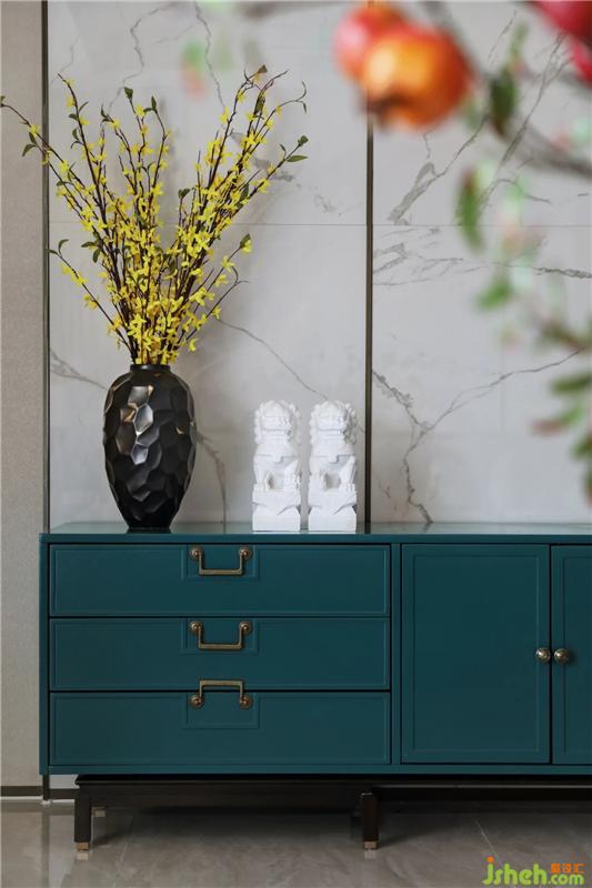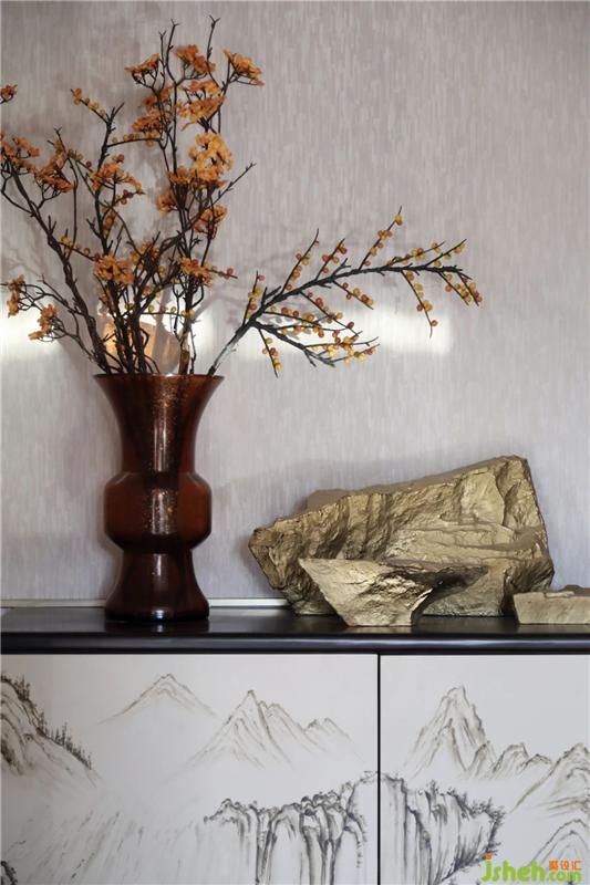 主臥在青山、碧湖、翠鳥(niǎo)的自然意象上延伸,以凝練的筆法抒寫(xiě)空間意蘊(yùn),訴說(shuō)著主人雅澹而雋秀的格調(diào)。