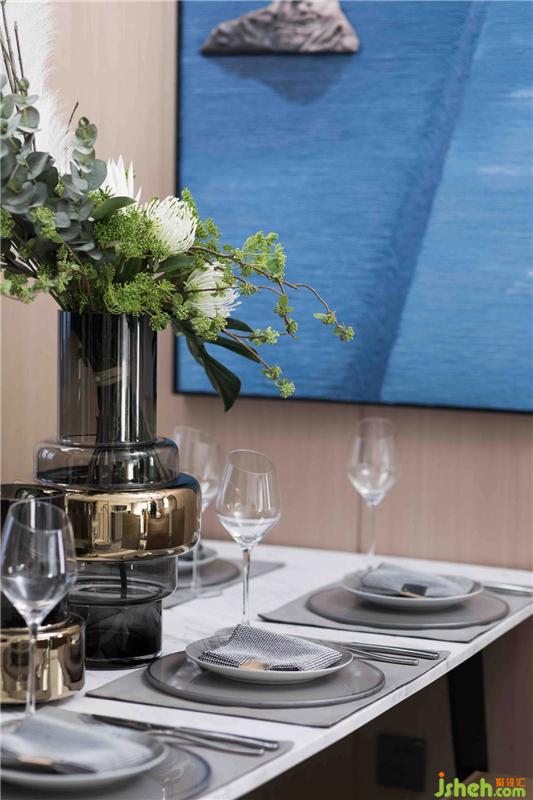 餐廳空間內(nèi),設(shè)計(jì)師用簡單符號(hào)化的裝飾品注解生活,詮釋著“功不求盈,業(yè)不求滿,花看半開時(shí),酒飲微醉處”的設(shè)計(jì)理念。