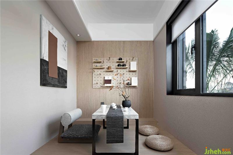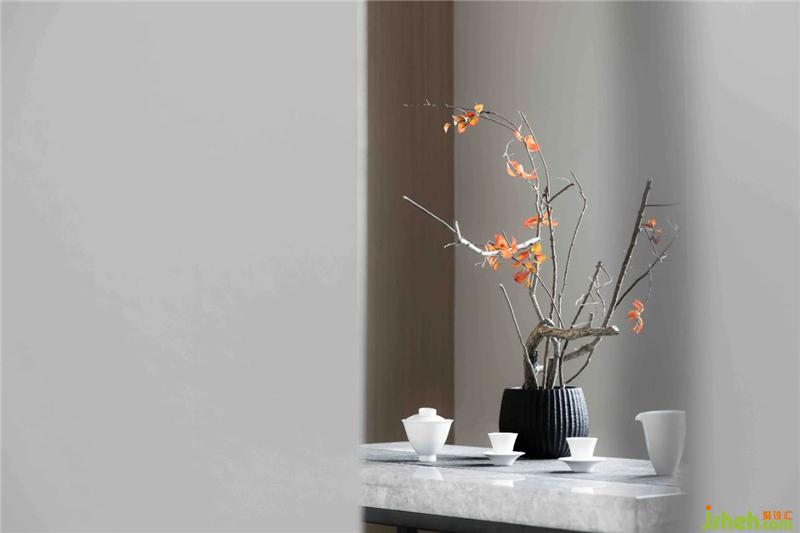 茶室盡顯中式儒雅,契合居者對(duì)禪意生活的向往與追求;桌腿的矩形設(shè)計(jì)打破傳統(tǒng)的條形桌腿的刻板印象,與弧形椅背形成巧妙的視覺(jué)差。