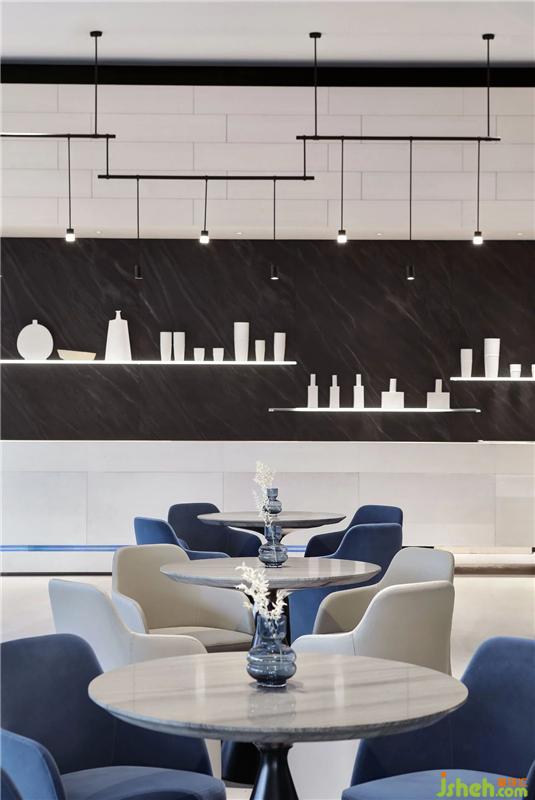 座椅運(yùn)用圓潤(rùn)的轉(zhuǎn)角處理,在不失端莊感的前提下適度增添活力;圓與錐的組合是解構(gòu)的極簡(jiǎn),色調(diào)沉穩(wěn)卻不失現(xiàn)代感。