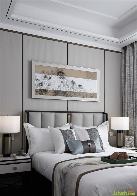 寬敞的主臥主要體現(xiàn)了生活的舒適性,整個(gè)空間在平靜沉穩(wěn)的灰色調(diào)的渲染之下,充滿了柔和的居家氣質(zhì),賦予了居住者獨(dú)一無(wú)二的居住體驗(yàn)。