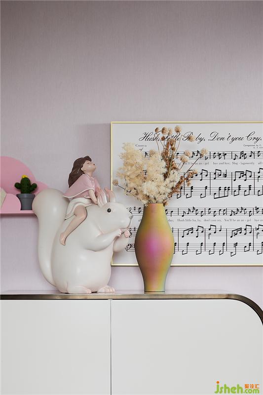譜寫動(dòng)人音符的裝飾畫、優(yōu)雅的小提琴、天真有趣的擺件等各種元素的點(diǎn)綴更為空間增添了一分清新活潑的氣質(zhì)