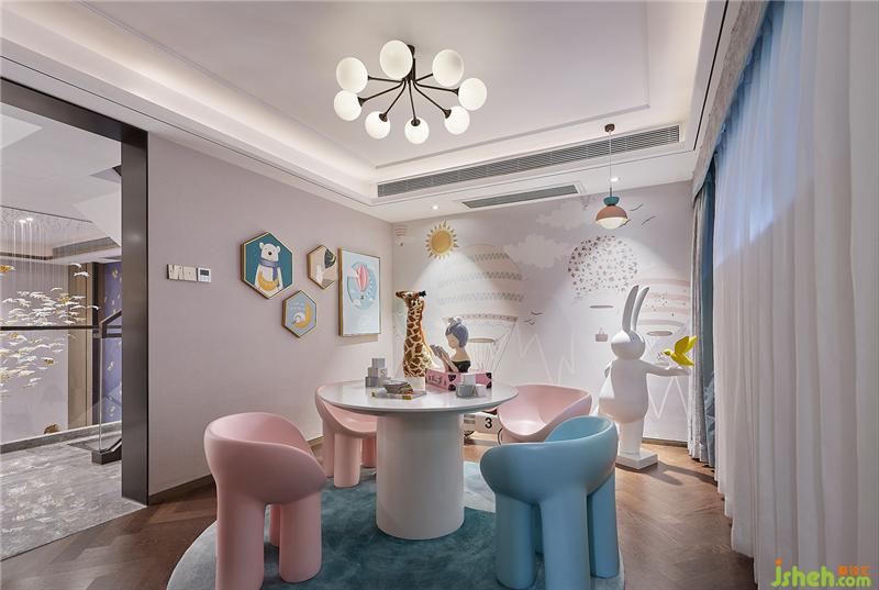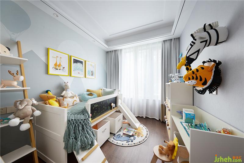 孩童總是對(duì)世界充滿了無(wú)限的好奇與想象,兒童房中滿是可愛(ài)的動(dòng)物玩偶,好似在森林中探險(xiǎn)漫游