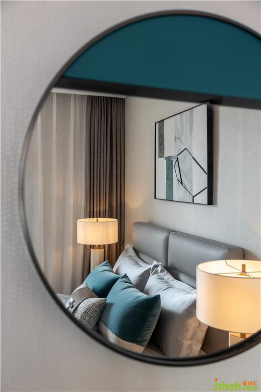 造型獨特的環(huán)形吊燈,彰顯意境的裝飾畫,點到即止的鏡像延伸,是空間情感恰如其分的表達,也是深意與詩意的相融。