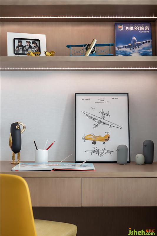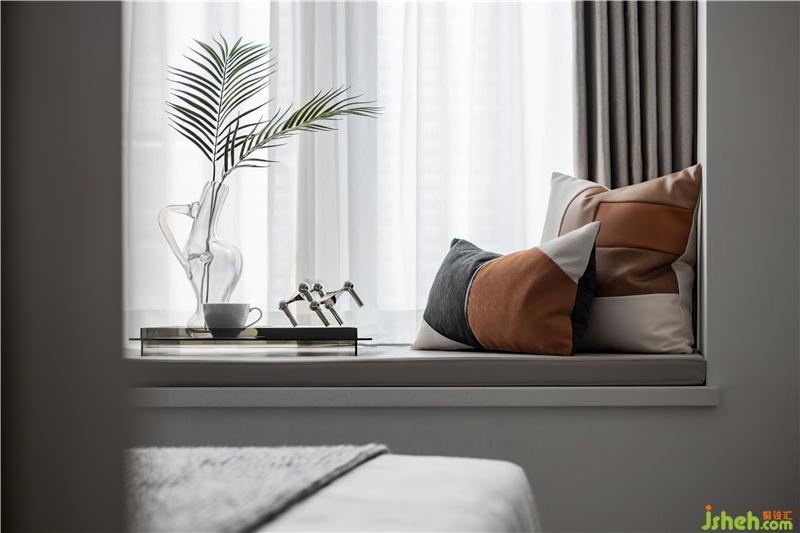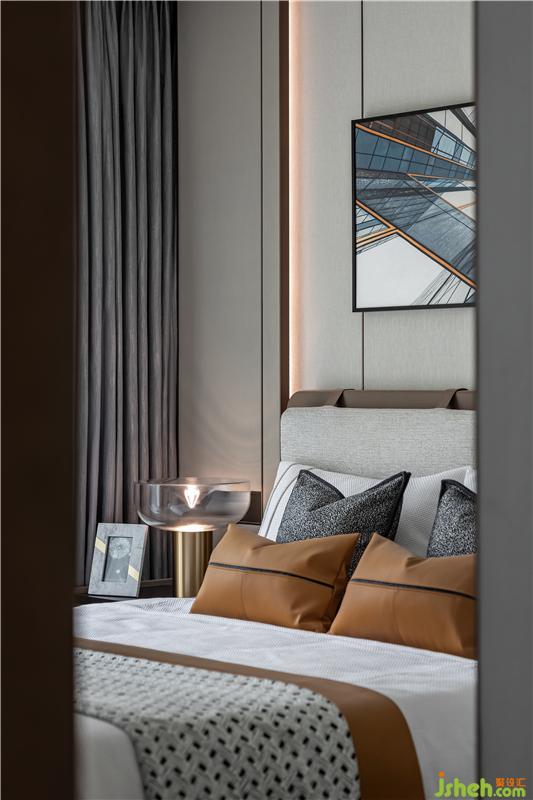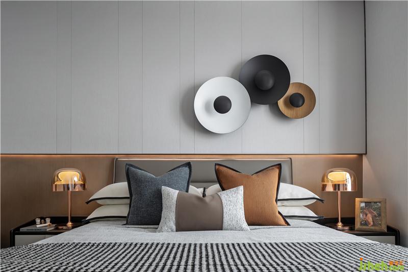 背景墻的裝置品不僅呈現(xiàn)出了別樣的層次感,又與整體空間色調(diào)相互呼應(yīng),營(yíng)造出了深遠(yuǎn)的視覺(jué)感官。