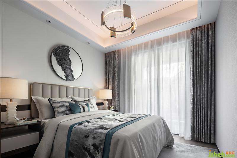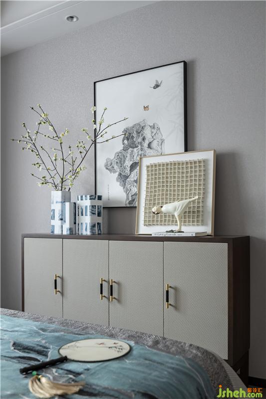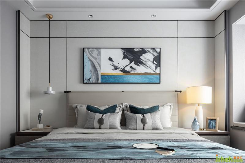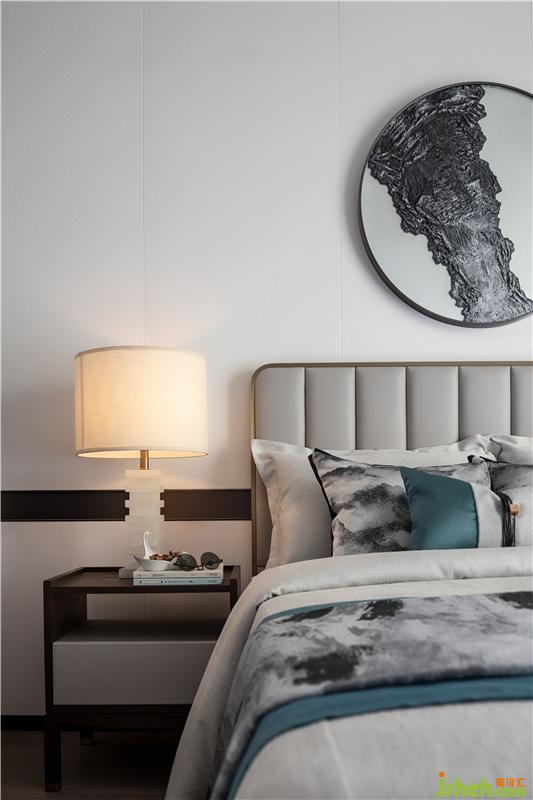 臥室清雅透亮,將寫(xiě)意之美淡淡暈染開(kāi)來(lái),松風(fēng)雅月,和田玉雕,淺灰色的硬包,再加以金屬點(diǎn)綴,奢而不過(guò),美感天成。