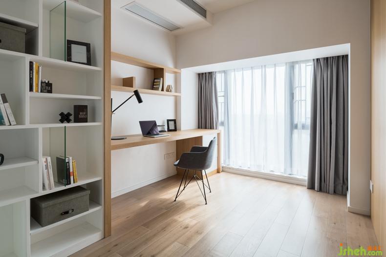 即使是在家里也能讓工作照常進行的R小姐,是這間書房的常駐人口,在滿足美觀的同時配置了盡可能大的書桌和可隨意調(diào)節(jié)的臺燈。從實用角度來說,以書桌的寬度配置一個書柜,會造成空間上浪費。所以設計師合理利用這個閑置的空間,在隔壁父母房相對應的位置也配備了一個內(nèi)嵌墻衣柜。室內(nèi)設計師