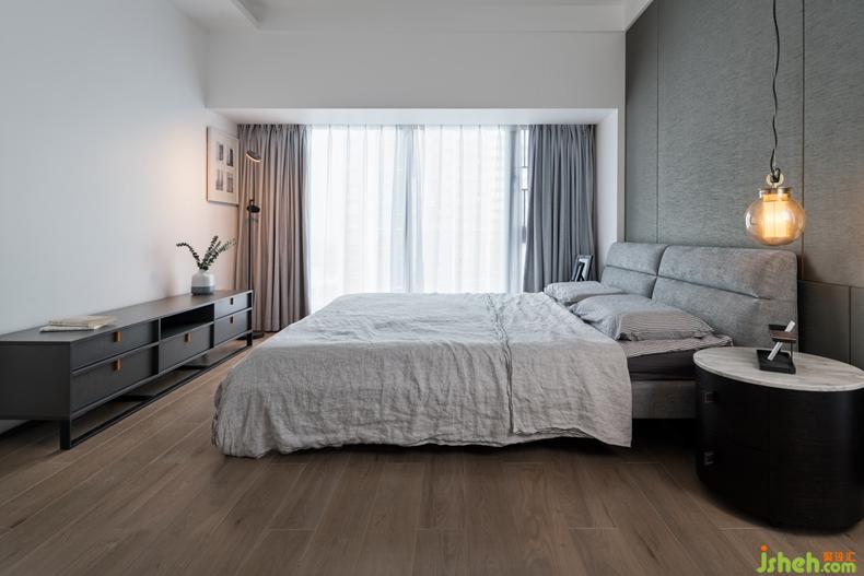 從溫潤如玉的性格到她篤信的眼神里,大家對R小姐的印象是“人生一如初見”。所以,主臥的設(shè)計(jì)主要從他們的性格出發(fā)。黑色的堅(jiān)韌和灰色的安靜作為主色調(diào),延續(xù)了客廳灰色電視背景墻的設(shè)計(jì),主臥也采用了一面墻的硬包??紤]到主臥的色調(diào)相對沉重所以床頭柜的選擇上會比較慎重。