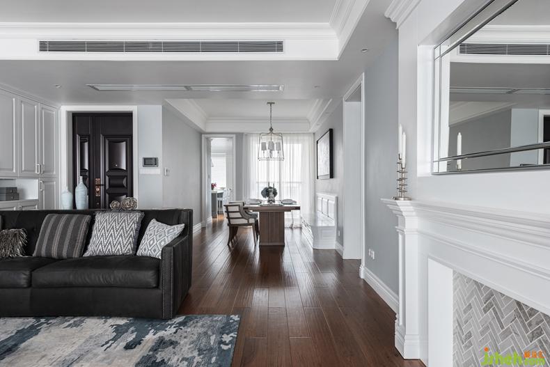 整體采用大地色色調(diào),色彩統(tǒng)一卻富有層次,簡(jiǎn)化的美式家具中隱約散發(fā)出現(xiàn)代的氣息。大而舒適的沙發(fā)/墻面上既可展示又可收納的置物板/壁爐,無(wú)不透露出美式生活的氣息。