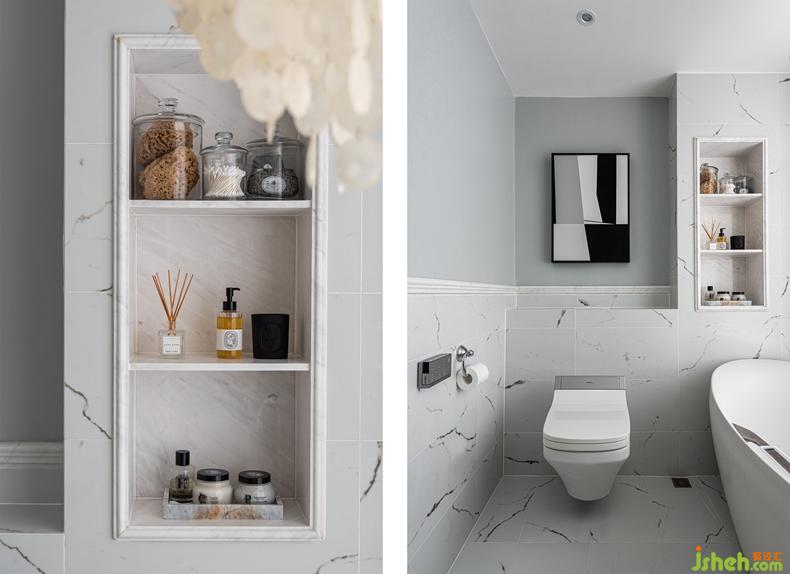 壁龕增強(qiáng)了衛(wèi)生間的收納功能,利用率極高,增加外框裝飾造型,從細(xì)節(jié)上豐富整個(gè)空間。