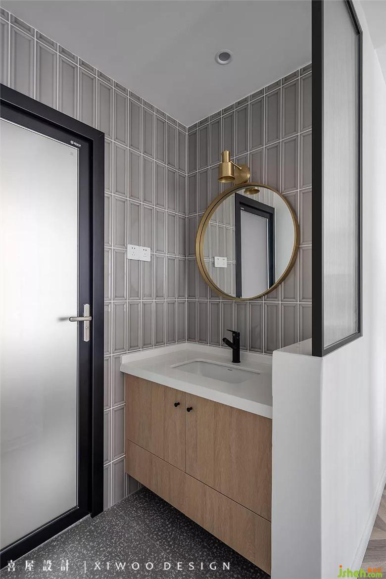 次衛(wèi)干濕分區(qū),小磚的鋪貼、半墻加長虹玻璃隔斷,無需過多的空間裝點(diǎn),只需流于平淡和生活。裝修公司