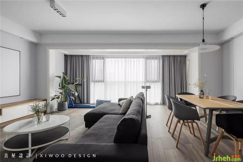 橫廳的最大益處在于分界規(guī)則中,利用軟裝家飾作為空間的魔法師,以經(jīng)典的灰色和木色完美結(jié)合,相互襯托、相互成就,打造出華爾不亂的居家空間。
