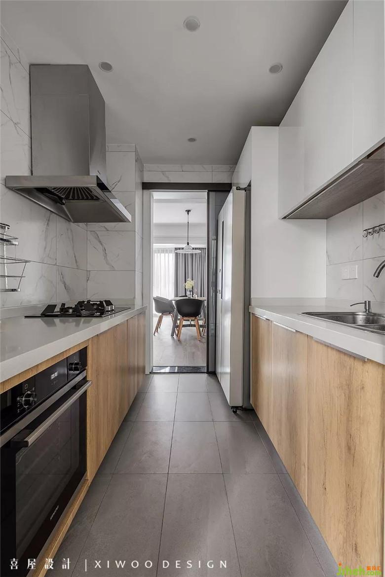 雙一字排開的廚房既做到“洗切炒”合理動線、操作的高效便捷,又保證貯藏美觀。