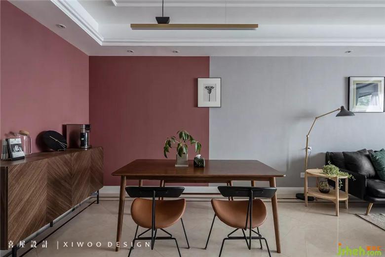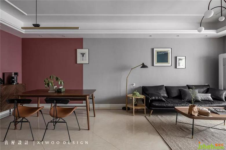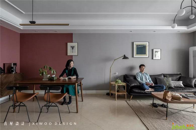 在保留原有精裝房淺色地磚的前提下,要達(dá)到符合他們氣質(zhì)的效果,需要有吸睛的部分。而象征樂觀活潑的色彩語素——帕莎諾瓦紅墻紙與煙灰色墻紙的結(jié)合,沿襲客餐廳空間的軌跡,演繹空間的精神內(nèi)核,革新生活的最終定義。