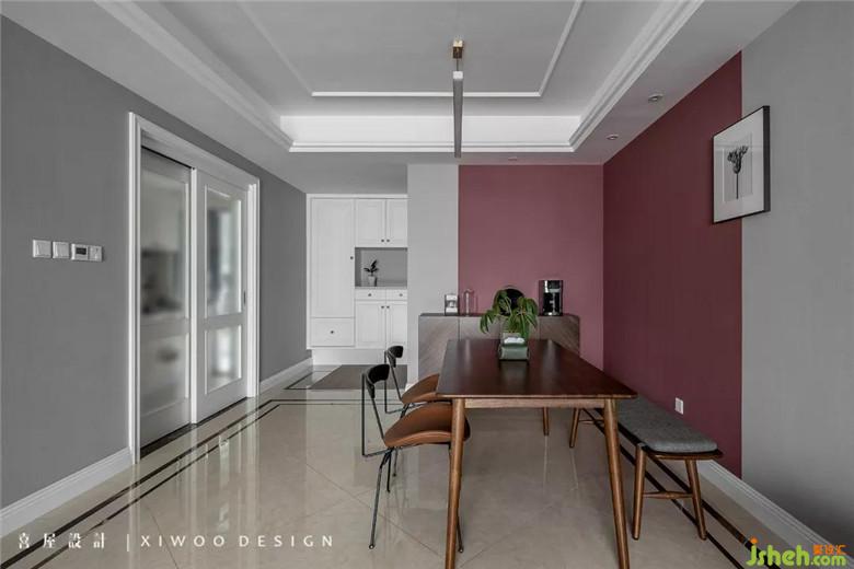 保留了原廚房推拉門和原鞋柜,餐廳增加了帕莎諾瓦紅,醒來的每一餐,都匯集著甜蜜而驚艷。
