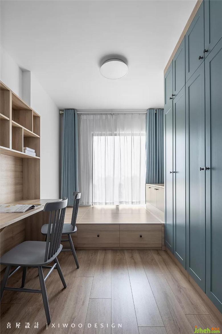 男孩房整體布局呈U型狀,選擇儲(chǔ)物和寢居功能為一體的榻榻米形式,與整體衣柜形成一個(gè)靈動(dòng)活潑的藍(lán)色整合體。大書(shū)桌前,哥哥耐心的為妹妹講著藍(lán)胖子與大熊的故事。隨著時(shí)間的運(yùn)行不斷變化,他們逐漸長(zhǎng)大,這種空間的經(jīng)驗(yàn)與記憶也會(huì)漸漸成為他們童年的回憶。