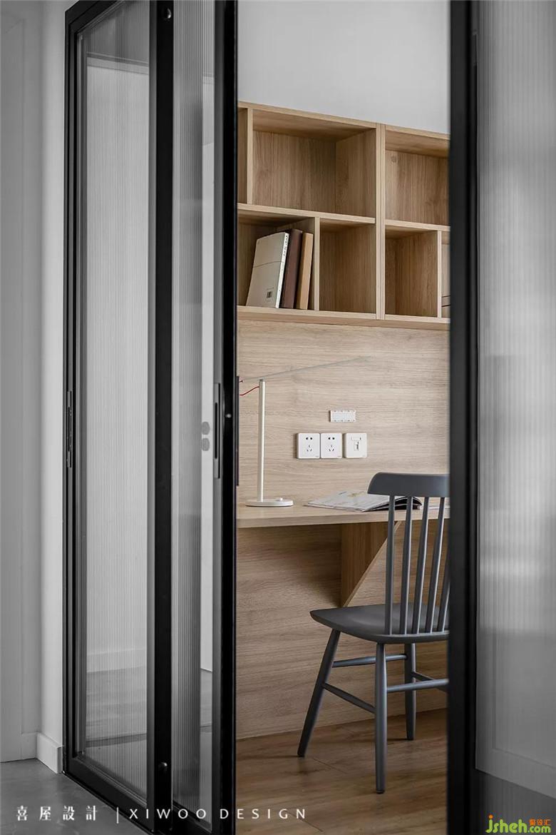 擴(kuò)大了門(mén)洞后做成長(zhǎng)虹玻璃推拉門(mén),增加男孩房整個(gè)空間的采光通風(fēng),使“灰空間”的存在感更強(qiáng)烈。