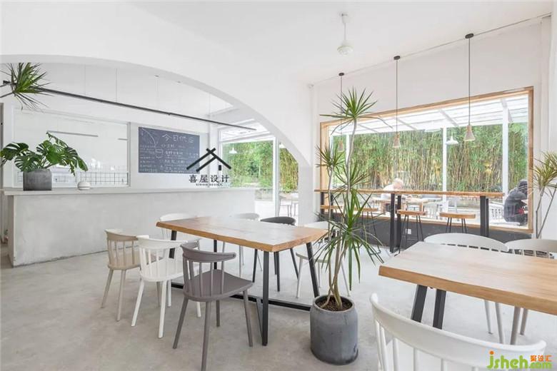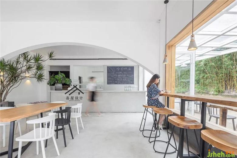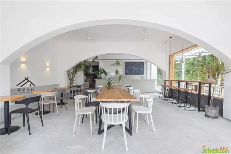 原店是一家荷塘月色臨街的鋪面,以前這里是賣魚的,內(nèi)部裝修比較雜亂,于是我們把室內(nèi)地面的磚敲掉,做了水泥地坪,節(jié)約開支也方便。原室內(nèi)兩個橫梁自然的做了拱形門洞。