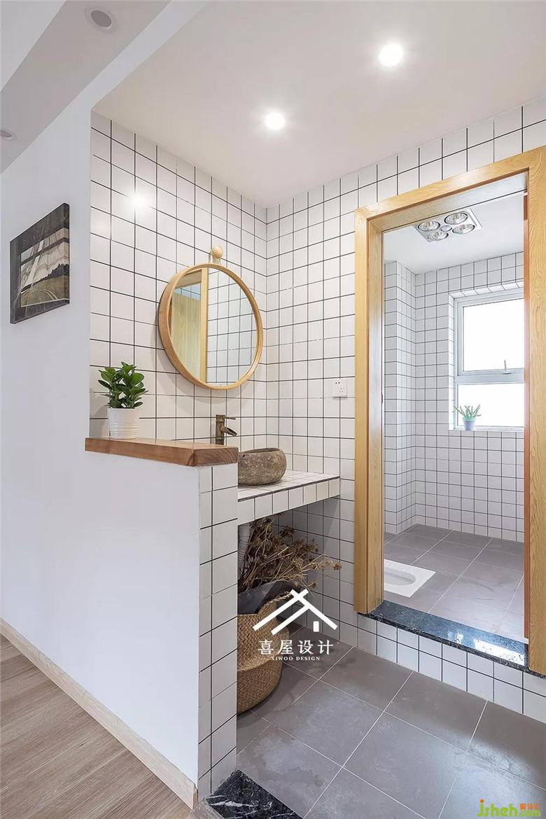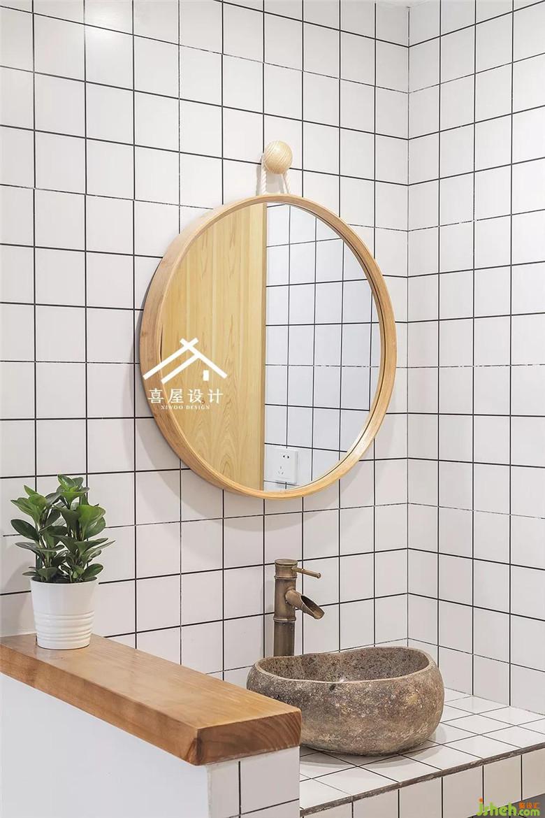 干區(qū)用的小白磚,用現(xiàn)澆板做的臺面,上面放一個石頭的盆子。原來干區(qū)是一堵到頂?shù)膲Γ玫粢话胍院?,剛好可以放點(diǎn)小東西。