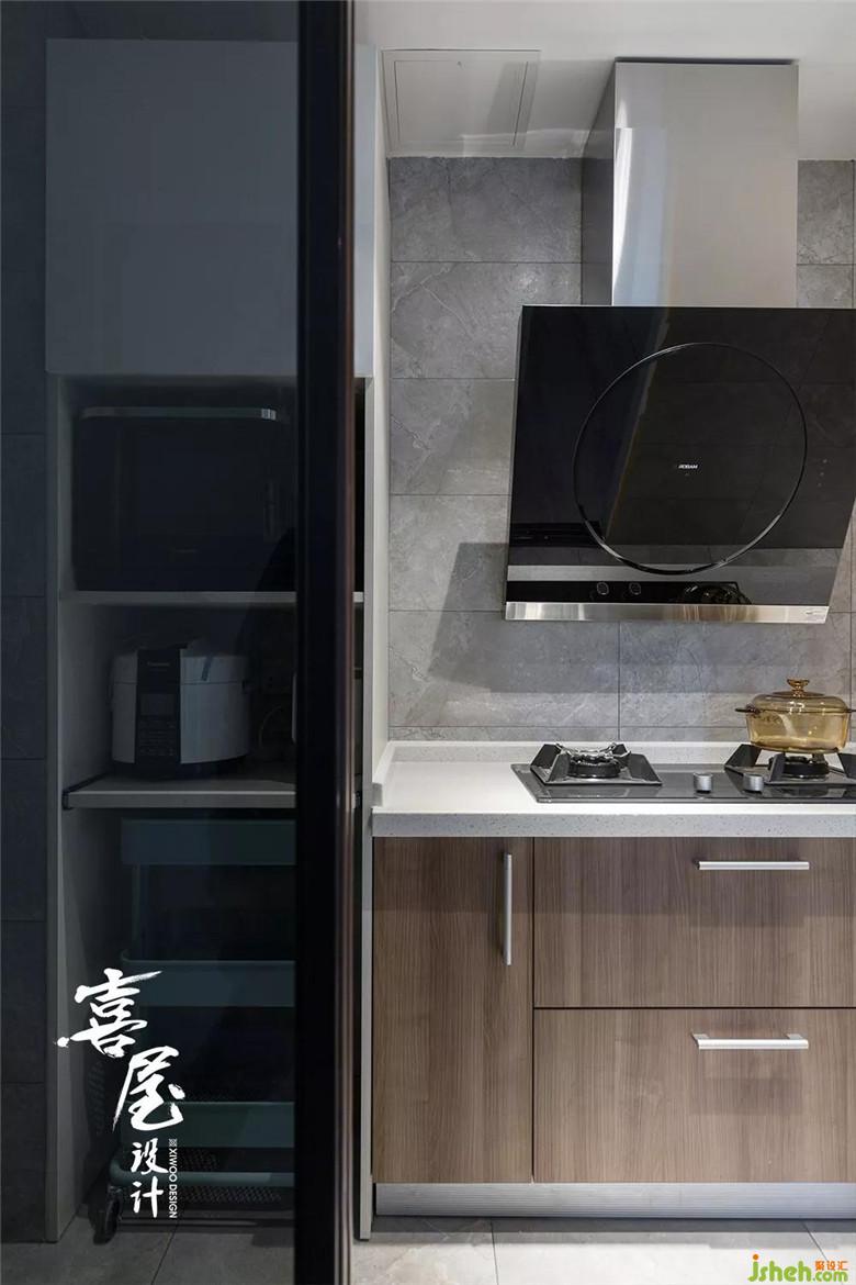 把原來(lái)進(jìn)深長(zhǎng)的走廊做了1,8米的黑框廚房推拉門(mén),增加廚房采光,也弱化了過(guò)道。每處門(mén)廊都能帶來(lái)陽(yáng)光的驚喜。