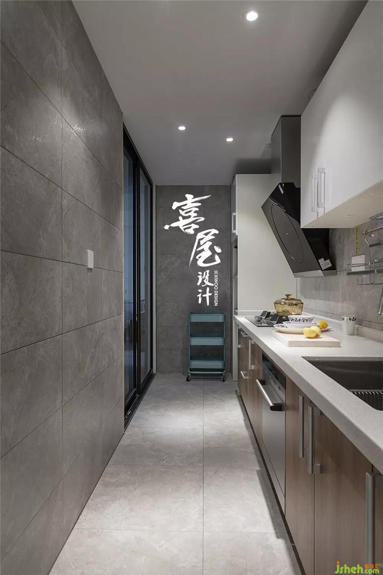 廚房旁邊的夾式照片墻,體現(xiàn)出了生活的生動(dòng)感。