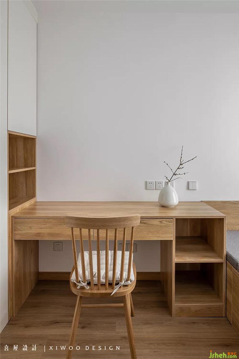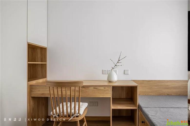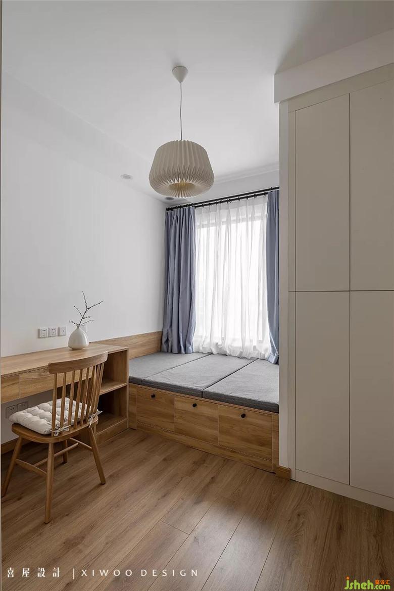 在原本不大的次臥, 以常規(guī)的“床+衣柜”的布局是比較困難的,室內(nèi)設(shè)計師選用利用率更高的榻榻米形式來打造實用性與舒適度并存的空間。整體定制的書桌與衣柜與榻榻米無縫銜接,可根據(jù)日常休閑、接待親友、兒童玩樂等不同需求變體,從而滿足多樣化場景使用。