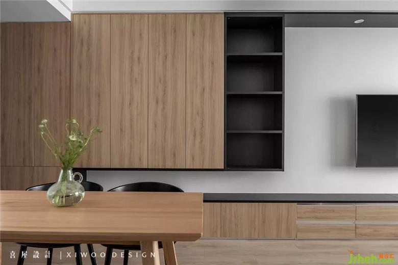 在局限和無限之間懂得取舍:從門廳延伸到飄窗的儲(chǔ)物柜,囊括了鞋柜、餐邊柜、書柜、電視柜,希望儲(chǔ)物空間無限擴(kuò)大,日雜用品都能得到很好的收納和隱藏。