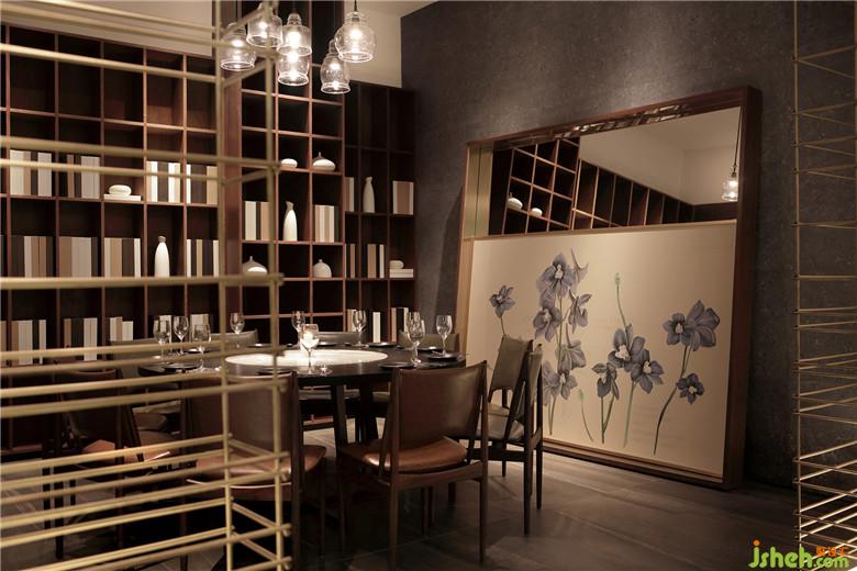 藍(lán)漆吊頂營造出意想不到的穩(wěn)重與舒適;利落的LOGO墻配上簡約的印象畫,將精致與色彩引至食客眼內(nèi);至于花朵、暖燭、高腳酒杯、侍者的微笑,那是最后的加分項(xiàng)。