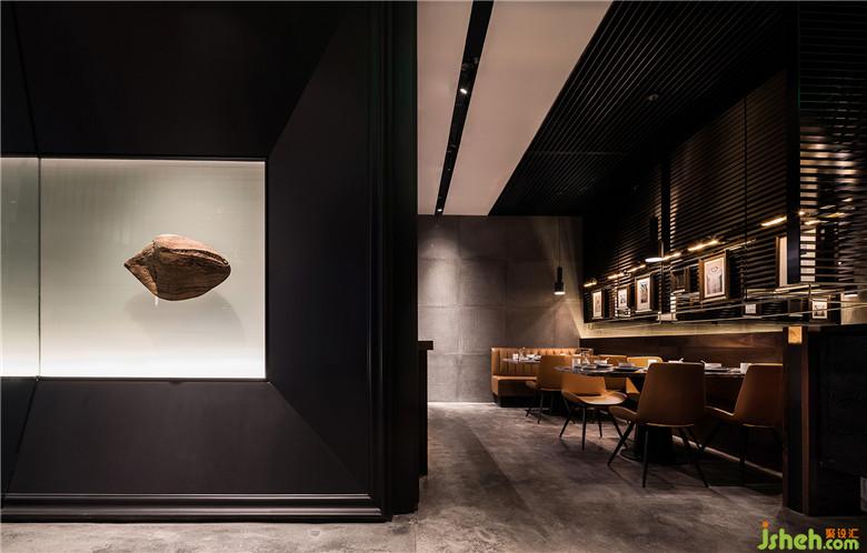 為了營造美食與藝術(shù)碰撞的氛圍,設(shè)計(jì)師引入藝術(shù)陳設(shè)的設(shè)計(jì)概念?;诤喖s設(shè)計(jì)的原則,設(shè)計(jì)師用樸素的材料和精致干練的造型賦予該項(xiàng)目全新的空間體驗(yàn)。
