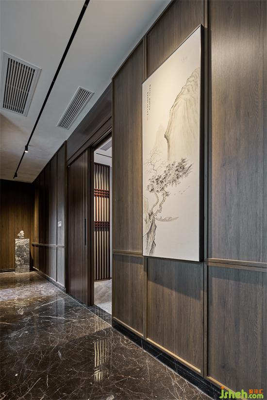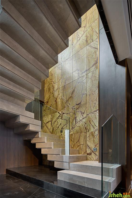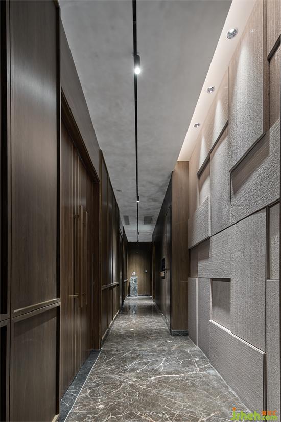 層層疊疊的樓梯踏步,猶如石塊堆疊的小山,引領(lǐng)著通往2層。2層整體私人會所設(shè)計娛樂性較強,設(shè)置接待用餐的大包間,藏酒閣,棋牌室,禪修室,茶室,KTV室等功能一應(yīng)俱全。