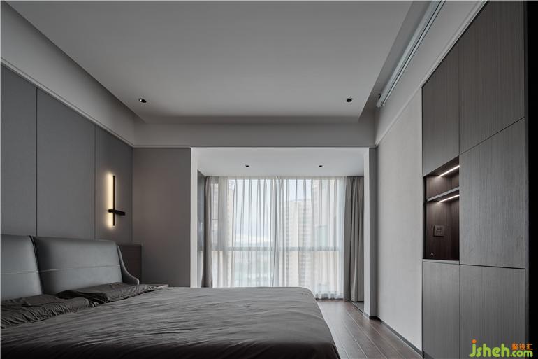 主人房經(jīng)過改造衣帽間跟洗手間單獨(dú)分開,家居設(shè)計(jì)即增加了衣帽間的容量,又解決了衣帽間進(jìn)洗手間引起的潮濕問題,一舉兩得。陽臺(tái)封起來作為了房間的一部分,使得主人房更加寬敞舒適。取消了傳統(tǒng)的掛壁電視,改成可移動(dòng)的投影。