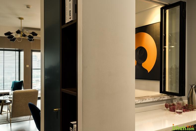 餐廳和廚房之間的折疊窗,保持了空間的通透性。在日常生活里也起到了便捷的功能,打開了廚房和餐廳的交流。深圳設(shè)計公司