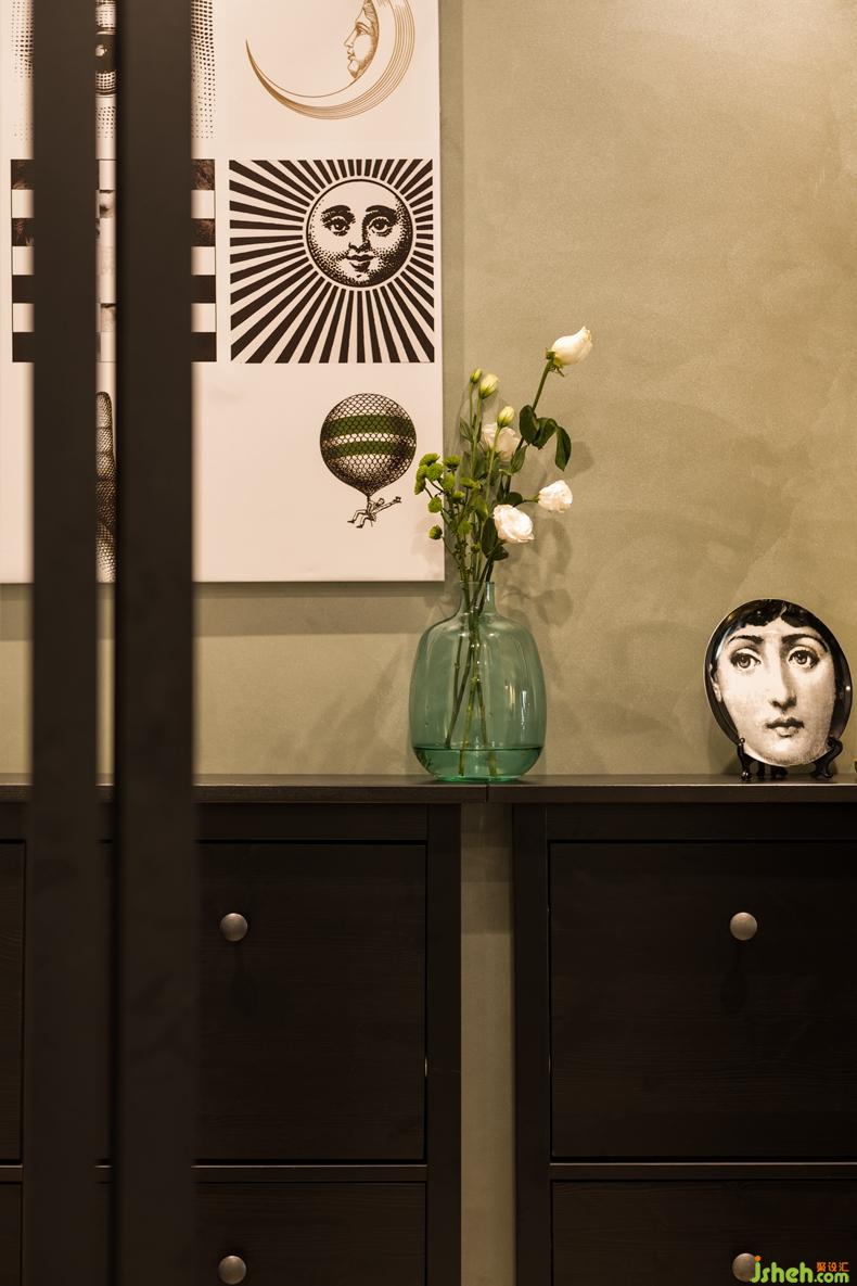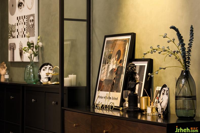 最喜歡的還是這塊用“全球最美的臉”作為裝點的小區(qū)域。用玻璃器皿、黑色的工藝雕塑、油畫,就能構(gòu)造出一個優(yōu)雅,藝術(shù)的高格調(diào)氛圍。