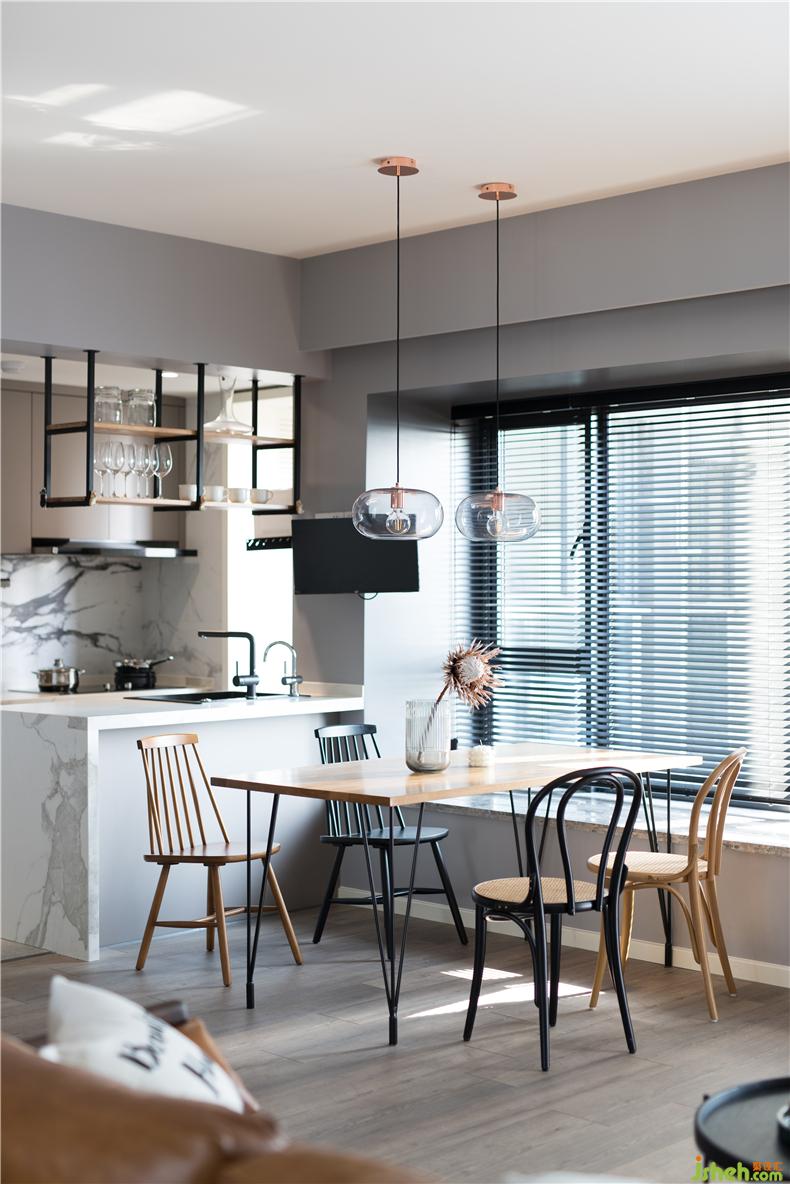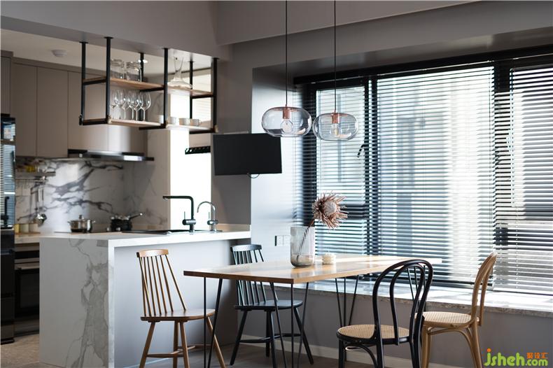 簡約的線條餐桌椅,鐵藝與木質(zhì)的搭配,工業(yè)風(fēng)下掛式的酒杯架,室內(nèi)設(shè)計師猶如愜意的咖啡廳文藝且情調(diào)。尤其是在閑暇時光,坐在一角落,夕陽的余暉,淺淺映射在桌面,一段輕柔舒緩的音樂,閉上雙眸,靜靜享受那份閑暇,托杯細品貌似苦澀卻很清甜的咖啡。