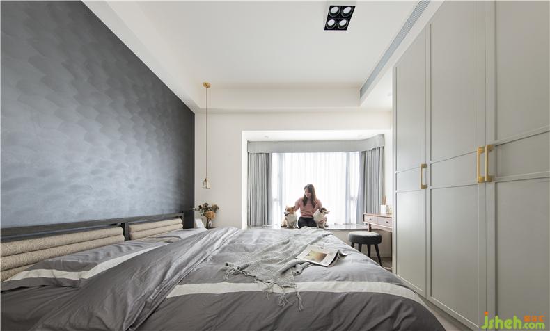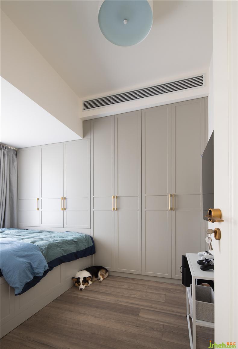 由于夫妻倆的衣物較多,但又希望有可以放包包的空間。除了再有衣柜的情況外,室內(nèi)設(shè)計師又加了一個不顯眼的儲物柜來增加收納空間。顏色基本保持統(tǒng)一,就是為了讓臥室空間看起來寬敞舒適。所有的物品只要擺放有序,那每天都是整潔干凈且溫馨的。