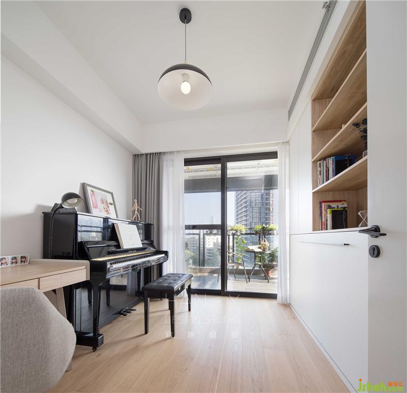 這間多功能房可以兼具不同使用場景,可以是書房,可以是練琴房,可以是儲物間,在隱藏沙發(fā)床從柜子里拉出來那一刻,可以是客房,一室多用。