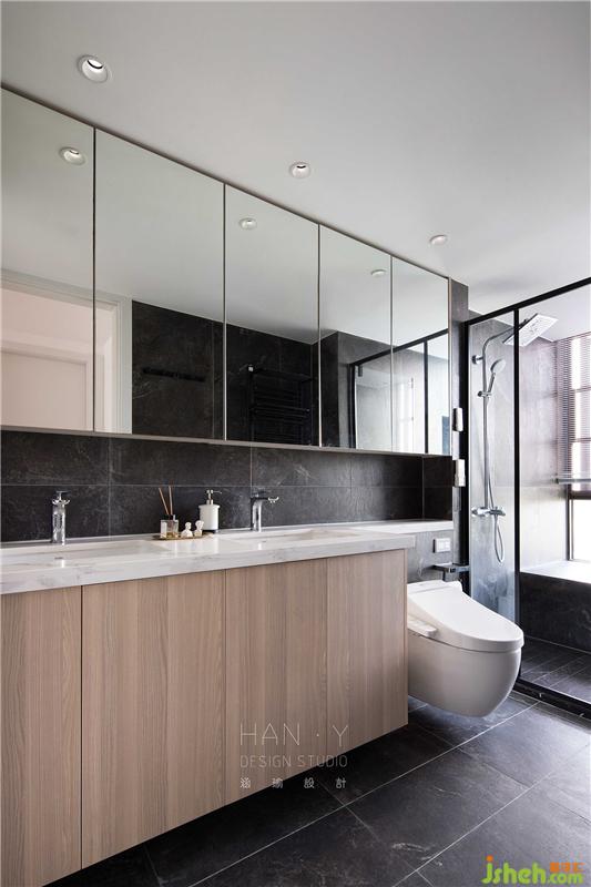公衛(wèi)也是運用到雙人位置洗手臺,實用簡約且增加使用的便利性,鏡面儲物柜到浴室柜可以收納一大家子的生活物品。