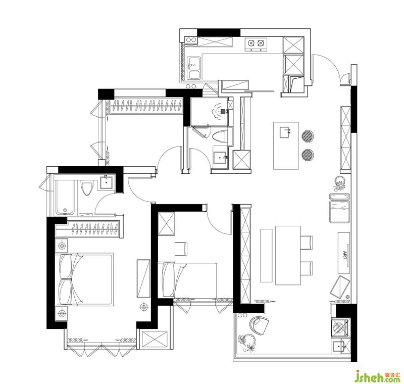 同時又具備著很強(qiáng)的收納功能,一切顯得井井有條,美觀和諧。